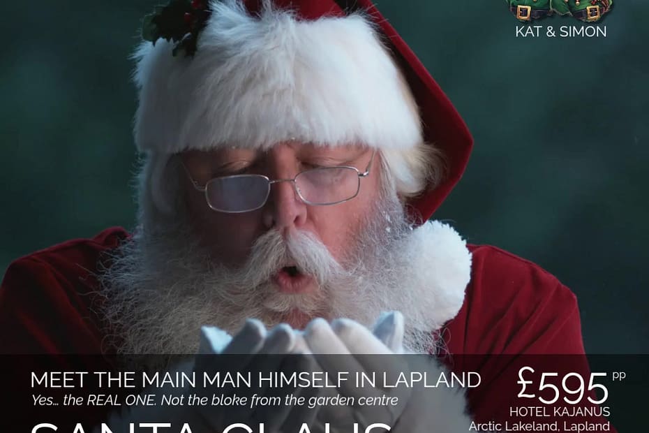 Call Kat & Simon for an unforgettable 4-night stay at Hotel Kajanus in Arctic Lakeland, Lapland. Departing Manchester on 10 Dec 2025 and returning 14 Dec 2025, this unique experience costs £595 for 2 adults. Yes, the REAL man himself awaits – not the garden centre bloke. Book now: Call 0800 0662 694. #LaplandAdventure #MeetTheMainMan #WinterGetaway
