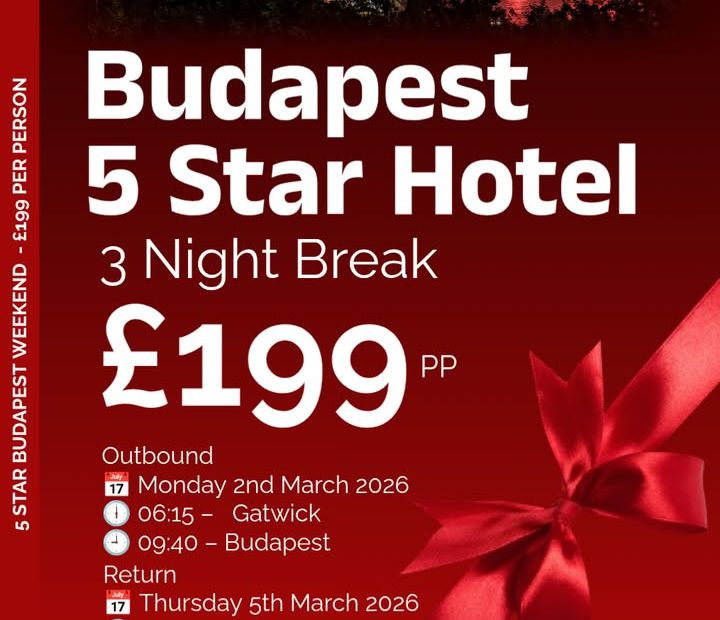 Enjoy a luxurious 3-night stay at a 5-star hotel in Budapest for just £199 per person. Depart from Gatwick on Monday 2nd March 2026 at 06:15 and return Thursday 5th March at 20:35. Book your perfect weekend escape now with Kat & Simon at Hays Travel. Call 0800 0662 694 or visit our Facebook page for details. #BudapestGetaway #LuxuryTravel #WeekendBreak