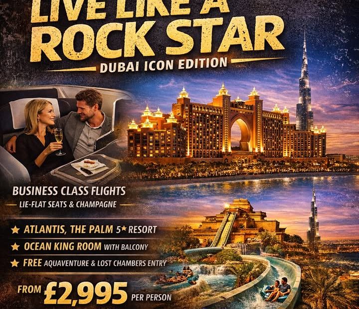 🎸✨ Business Class Atlantis Dubai £2995 LIVE LIKE A ROCK STAR – DUBAI EDITION ✨🎸 If you’re going to Dubai… arrive like a legend. This… Read More »“Rock Star Experience in Dubai: Business Class + Atlantis £2995”