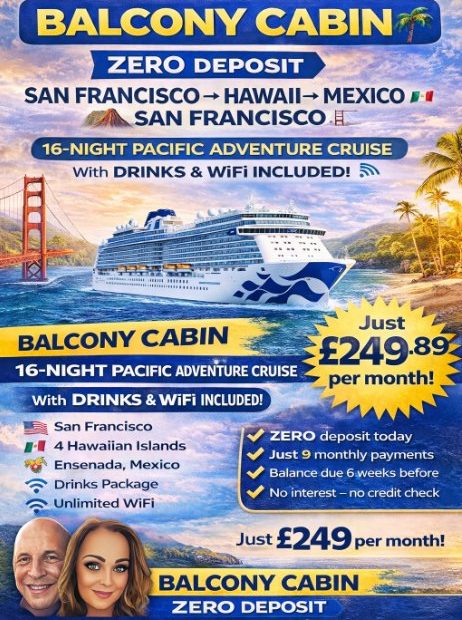 πππ΄ SAN FRANCISCO β HAWAII β MEXICO β SAN FRANCISCO π΄ππ 16 NIGHT PACIFIC ADVENTURE CRUISE β BALCONY CABIN + DRINKS & WIFI INCLUDED πΉπΆ… Read More »16 Night Pacific Adventure Cruise: San Francisco β Hawaii β Mexico β San Francisco π’π΄